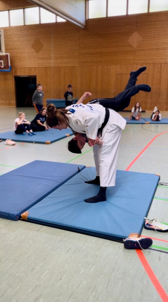 Am 09.05.25 war die Judoka Anna-Maria Wagner zu Besuch und zeigte den Klassen 6, 9 und 10 einige ihrer Techniken. Außerdem konnten die Schülerinnen und Schüler Fragen zum Alltag einer Olympionikin stellen.